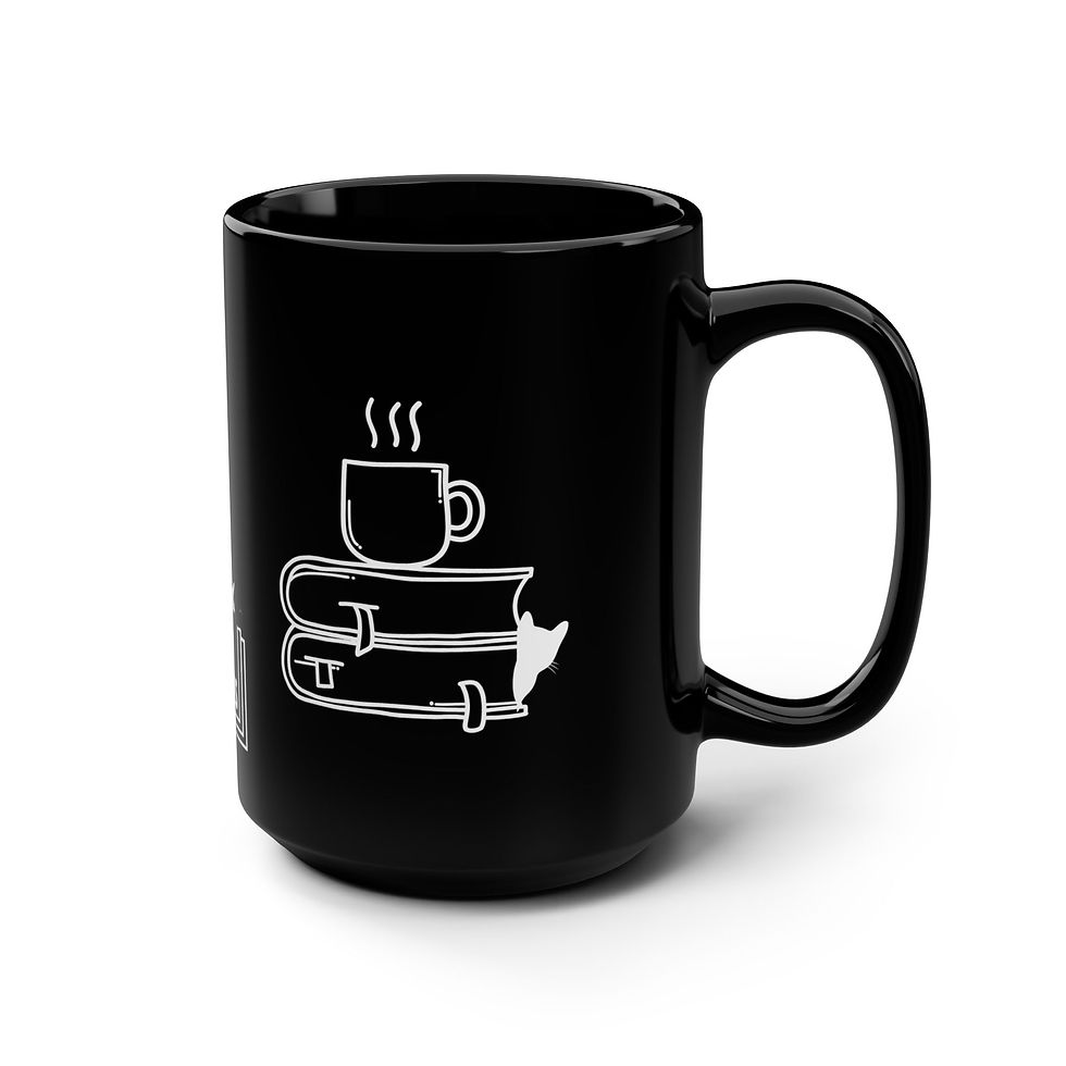 Cozy Cats, Coffee & Books Mug, Black Coffee Mug, 15oz.